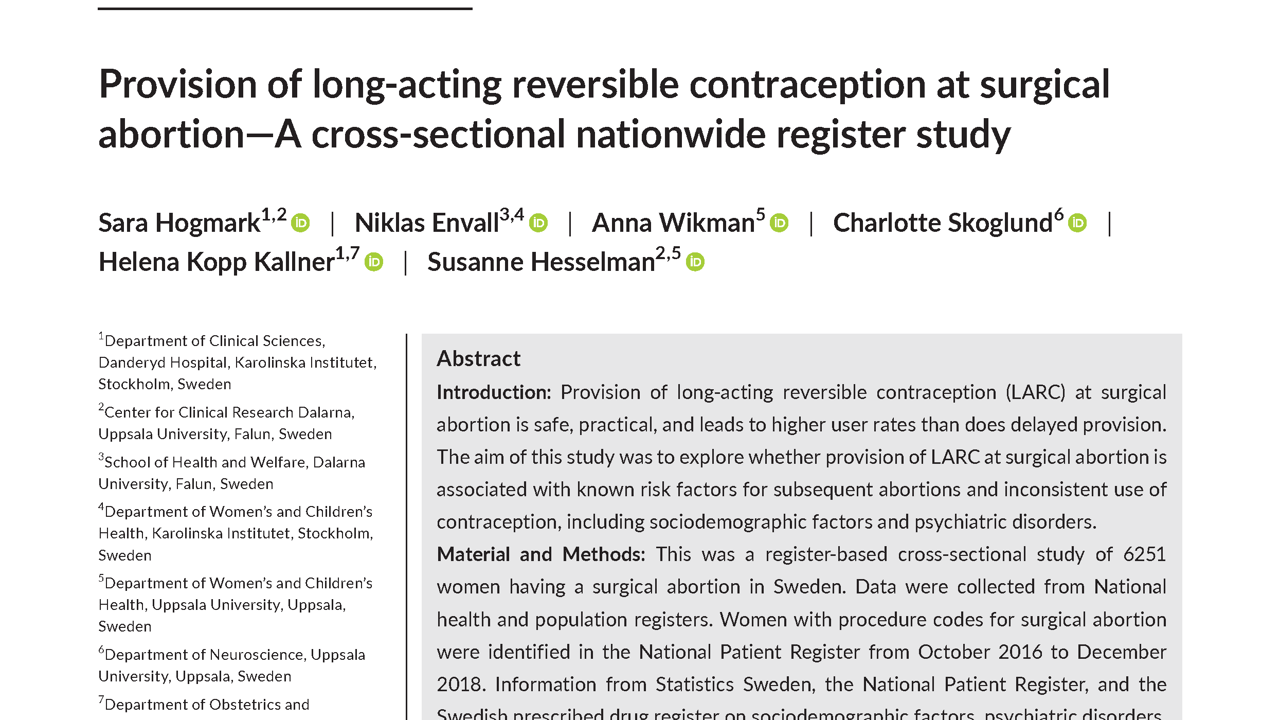 Co-authors: Sara Högmark, Niklas Envall, Anna Wikman, Helena Kopp Kallner and Susanne Hesselman.