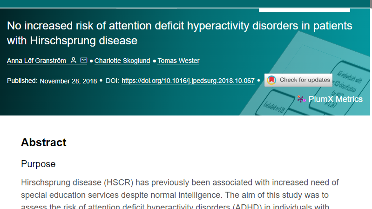 Barn med Hirschsprungs sjukdom behöver oftare än andra barn stöd i skolan trots att de har normal intelligens. I den här studien undrar vi om de också oftare har ADHD?