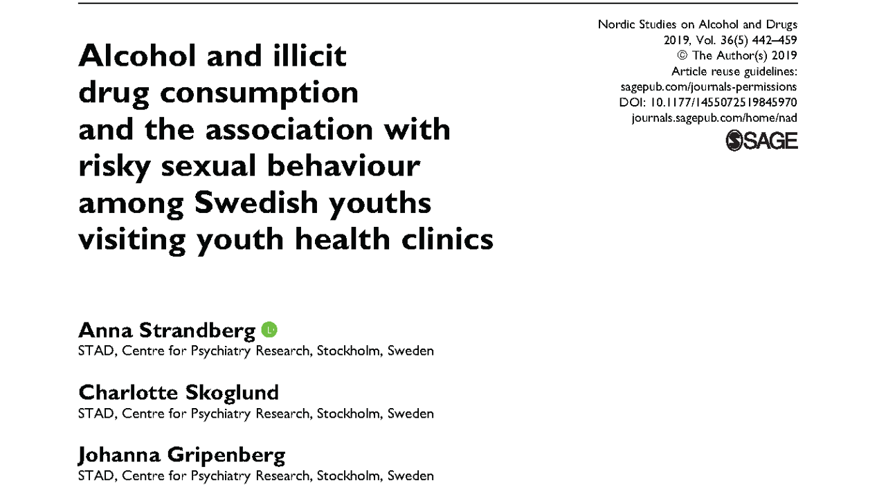 Alcohol and illicit drug consumption and the association with risky sexual behaviour among Swedish youths visiting youth health clinics